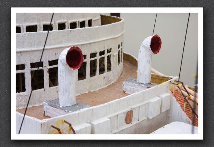 Length: 25 feet 3 inches This was the largest ship I have ever built, and will probably remain the largest ship I have ever built. It took too long, too much to move around and had a hard time convincing museum to to exhibit it. Built in 6 sections, the Queen Mary was never assembled full until it's first exhibit. There were 3 lower hull pieces and 3 upper works sections. I had doubts that it would be accurate enough to look good. Yet, on it's first exhibit, it looked perfect. This ship has been seen internationally and many many online blogs feature photos of it. It featured on Good Morning America, and ABC Word News. Most of all, this was the first ship that I used the internet for photos and mechanical drawings. My previous were chosen because I could only find that kind of detail with more notable ships that had sunk. |