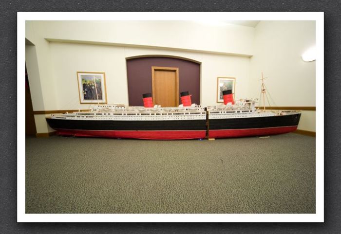Built in 6 sections, the Queen Mary was never assembled full until it's first exhibit. There were 3 lower hull pieces and 3 upper works sections. I had doubts that it would be accurate enough to look good. Yet, on it's first exhibit, it looked perfect. This ship has been seen internationally and many many online blogs feature photos of it. It featured on Good Morning America, and ABC Word News.