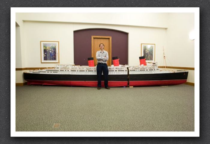 Length: 25 feet 3 inches This was the largest ship I have ever built, and will probably remain the largest ship I have ever built. It took too long, too much to move around and had a hard time convincing museum to to exhibit it. Built in 6 sections, the Queen Mary was never assembled full until it's first exhibit. There were 3 lower hull pieces and 3 upper works sections. I had doubts that it would be accurate enough to look good. Yet, on it's first exhibit, it looked perfect. This ship has been seen internationally and many many online blogs feature photos of it. It featured on Good Morning America, and ABC Word News. Most of all, this was the first ship that I used the internet for photos and mechanical drawings. My previous were chosen because I could only find that kind of detail with more notable ships that had sunk. |