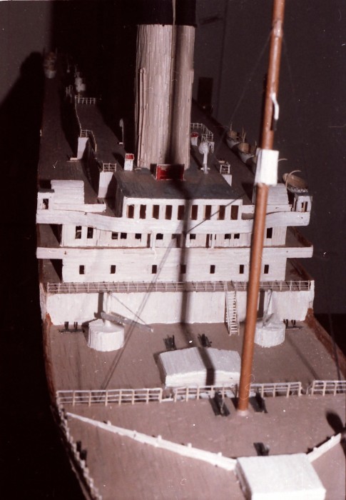 The RMS Titanic was the first ocean liner I had ever built. It was inspired by the first search of the Titanic by Grimm in the early 80s. And, of course, the book "A Night to Remember" by Walter Lord. The ship was built from deckplans from Lord's book. There was no internet back then. So, if I could not find it in the local library, my ship was sunk. This ships was built with a 3 section skeleton. They would be jointed together for a total length of 10 feet.