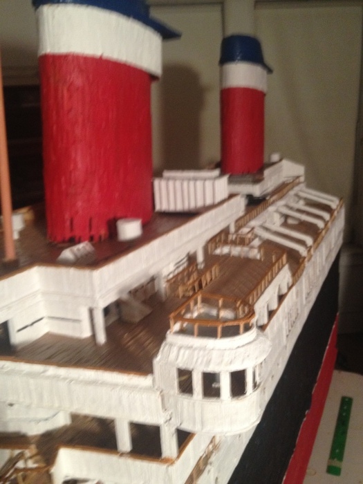 Not exactly the easiest of hobbies to manage and mantain. But, I like to do it anyway For a whole year, starting in March of 2015, I worked on the SS America non-stopped. I limited my entertainment excursions, ate dinner in my car on my way home from work. All to save time. I was just that determined to get this thing done and out of my house. It was starting to be like an uninvited guest. At left, are all my facebook updates that I posted starting from present going to back to March 2015. During that whole year, I added over 140,000 toothpicks to the upper sections of the ship. My original estimate was 3 months to completion. I was about 9 months late. It is a real toothpick timeline! |